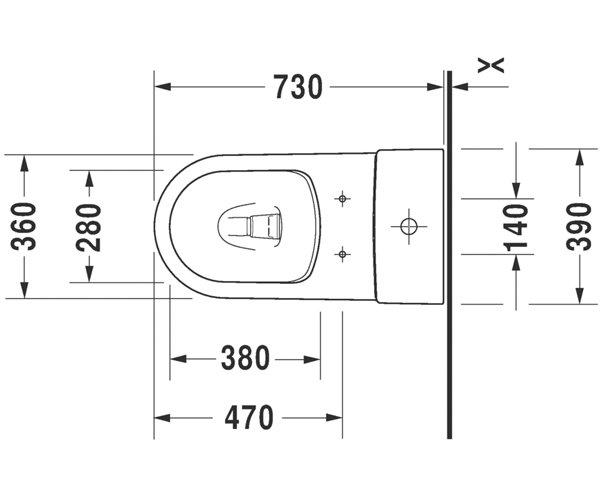 无缝冲水, 美式座便器, 加长型带虹吸喷头, 305 mm/12" 坑距, 垂直出水, 适用于 SensoWash® Starck