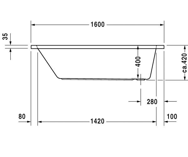 1700 x 700 mm矩型, 嵌入式, 带一个倾斜靠背, 出水口位于脚部, ´卫浴亚克力