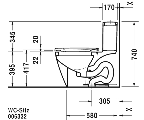 型号 213301 美式座便器, 适用于 SensoWash® Starck, 加长型带虹吸喷头, 305 mm/12" 坑距, 单冲水装置,顶部冲水, 垂直出水, 1.28加仑/冲 (4.8升) 了解更多 Philippe Starck 设计 尺寸:375 x 715 mm 可变形式 ©2133010005
