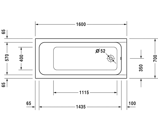 1700 x 700 mm矩型, 嵌入式, 带一个倾斜靠背, 出水口位于脚部, ´卫浴亚克力