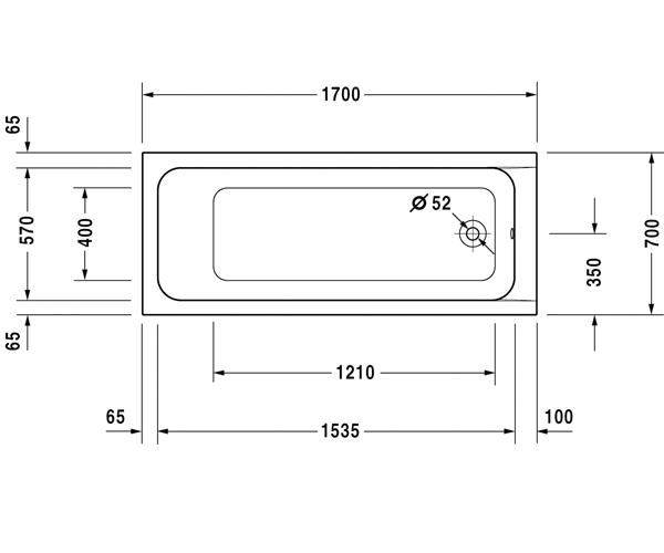 型号 700098 矩型, 嵌入式, 带一个倾斜靠背, 出水口位于脚部, ´卫浴亚克力 sieger design 设计 尺寸:1700 x 700 mm 可变形式 基本型号 700098000000000