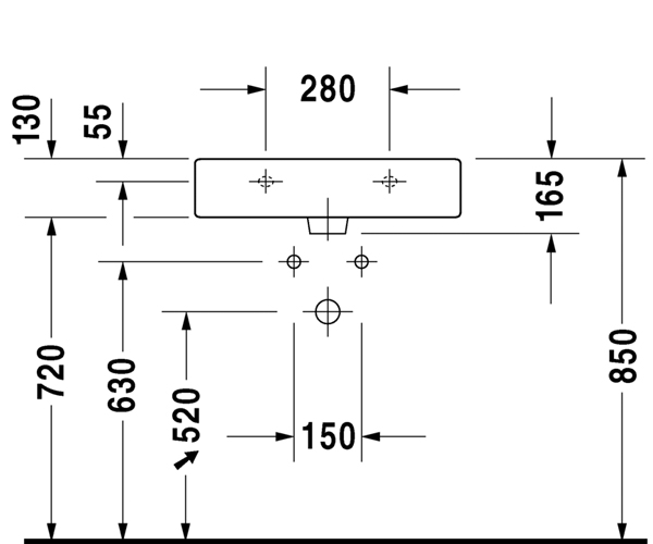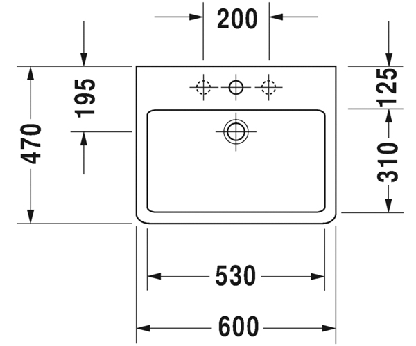 有安装龙头台, 外表面上釉, 600 mm