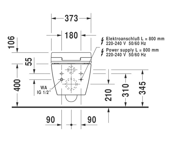 无缝冲水, 水封在后, 包括 Durafix 配件包, 仅能够与SensoWash®搭配使用, 连接组件适用于带隐藏式连接件的 SensoWash®